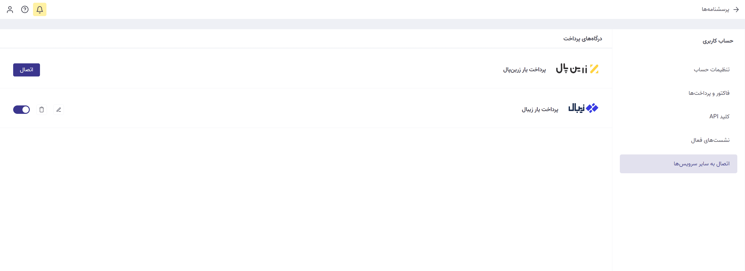 درحساب کاربری با کلیک روی بخش پروفایل، ویرایش حساب کاربری و سپس اتصال به سایر سرویسها میتوانید درگاههای خود را مدیریت کنید.