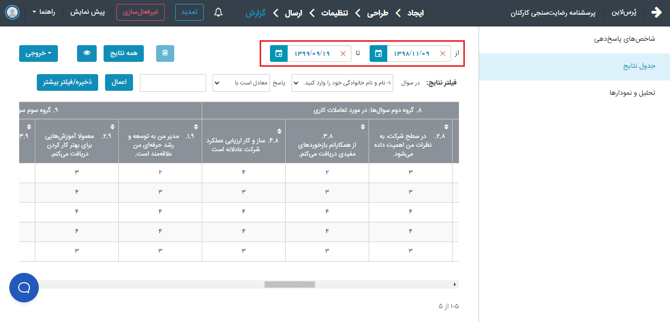 فیلتر نتایج از طریق تاریخ ثبت پاسخ