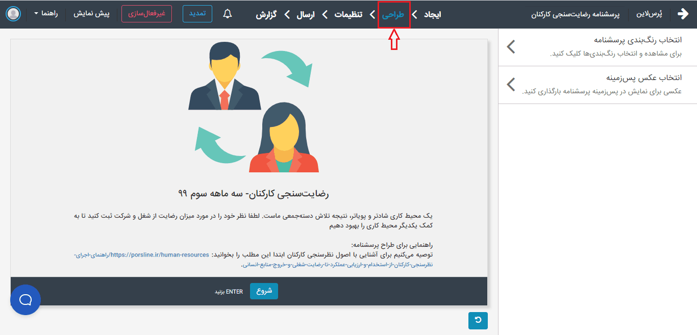 افزودن رنگ‌بندی و تغییر تم پرسشنامه