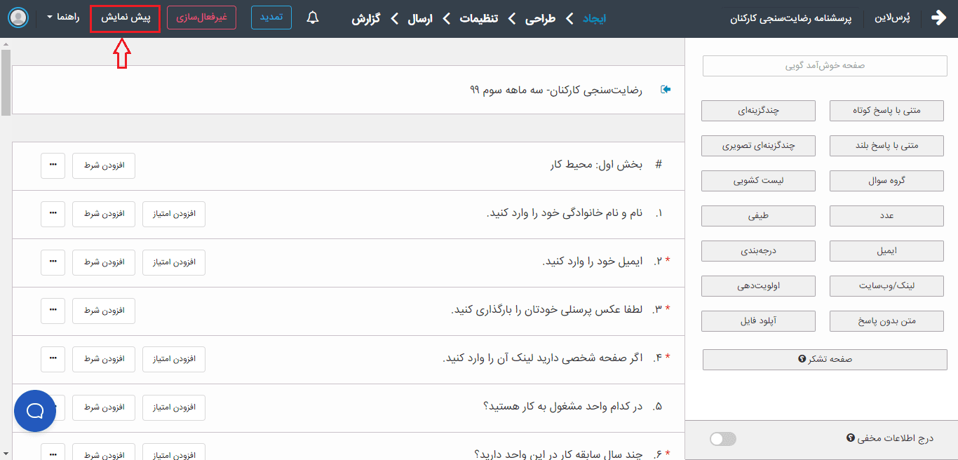 برای کنترل نهایی پیش از ارسال، پیش‌نمایش پرسشنامه را مشاهده کنید